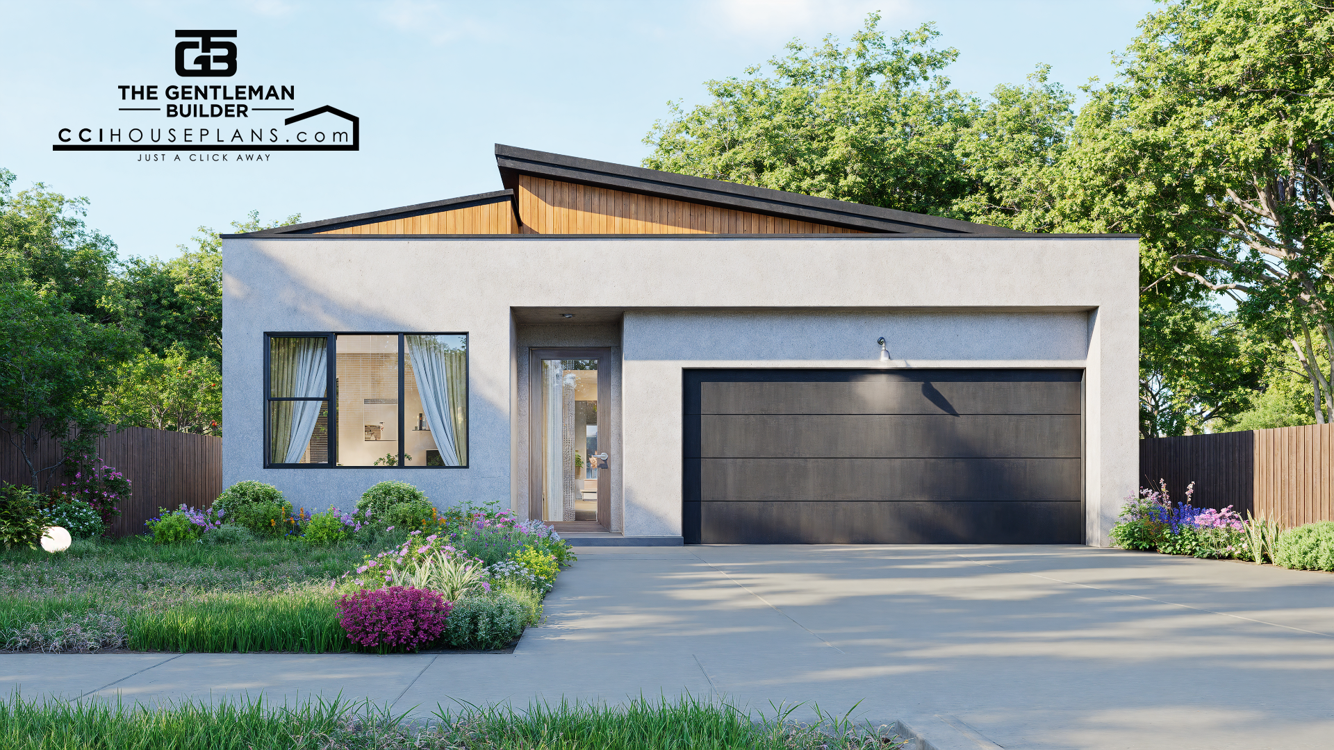 Modern Elevation: Sleek, contemporary curb appeal with a functional one-story footprint.