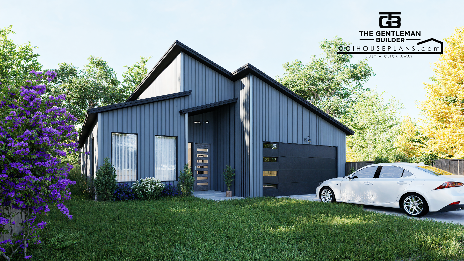 The TGB-040 is a striking contemporary home featuring sharp architectural details and slanted rooflines that create a bold and modern curb appeal.