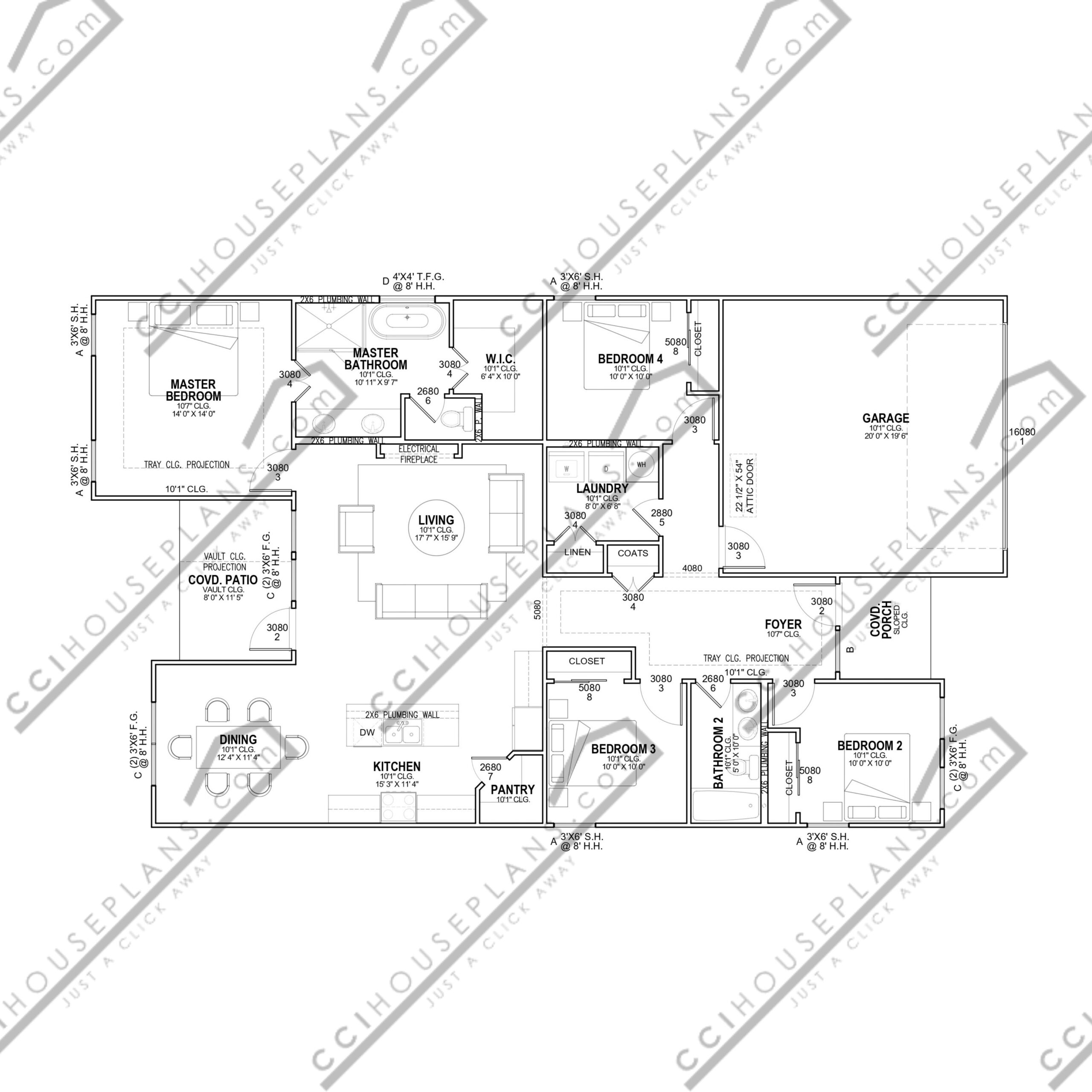 Plans indicating location and types of electrical fixtures, switches, outlets, and how they are to be switched. Plans do not include circuiting or wire sizing. Plans will also include specialty items such as hose bibbs, gas connections, location of a/c equipment, return air vents or other mechanical/electrical/plumbing items which need to be located.