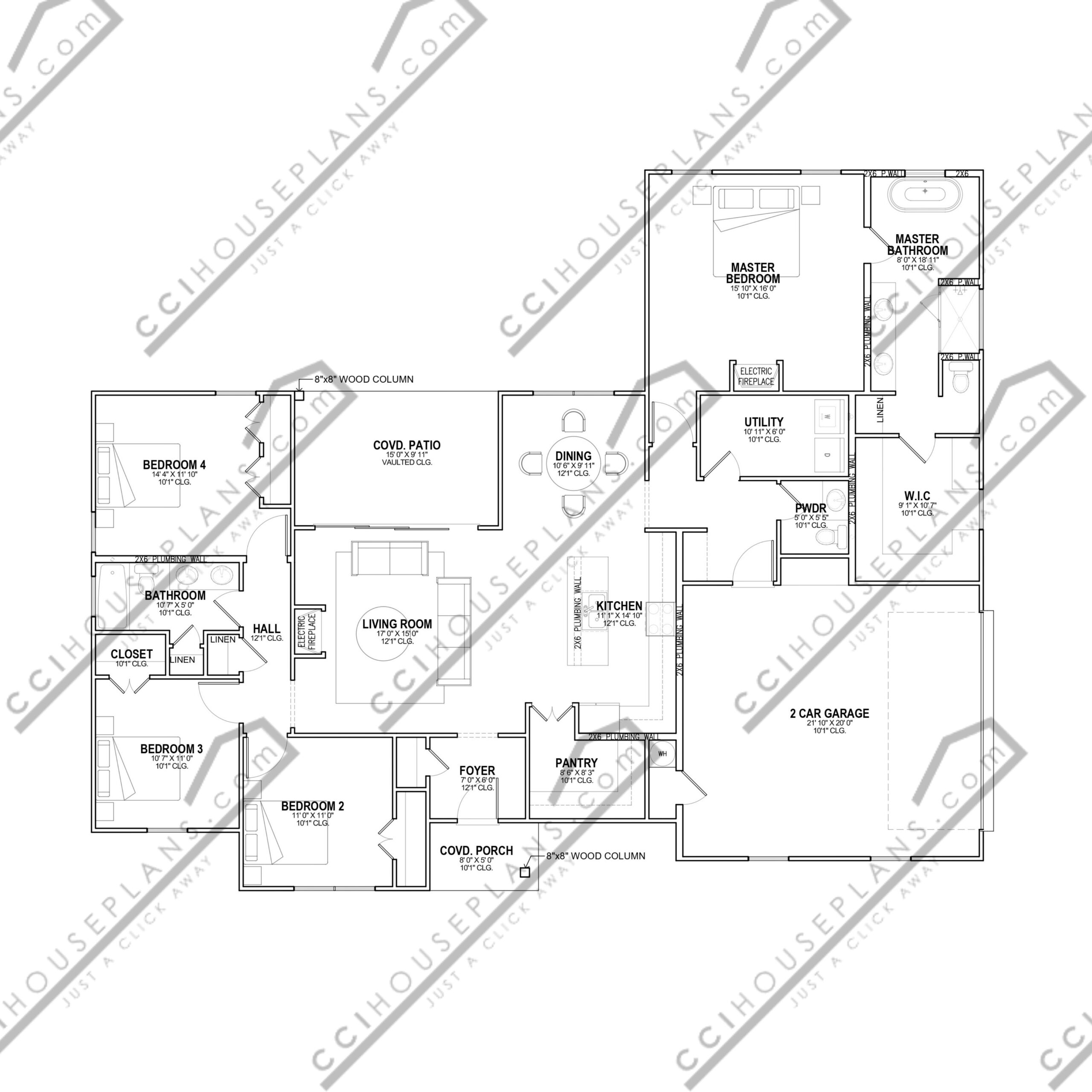 Plans indicating location and types of electrical fixtures, switches, outlets, and how they are to be switched. Plans do not include circuiting or wire sizing. Plans will also include specialty items such as hose bibbs, gas connections, location of a/c equipment, return air vents or other mechanical/electrical/plumbing items which need to be located.