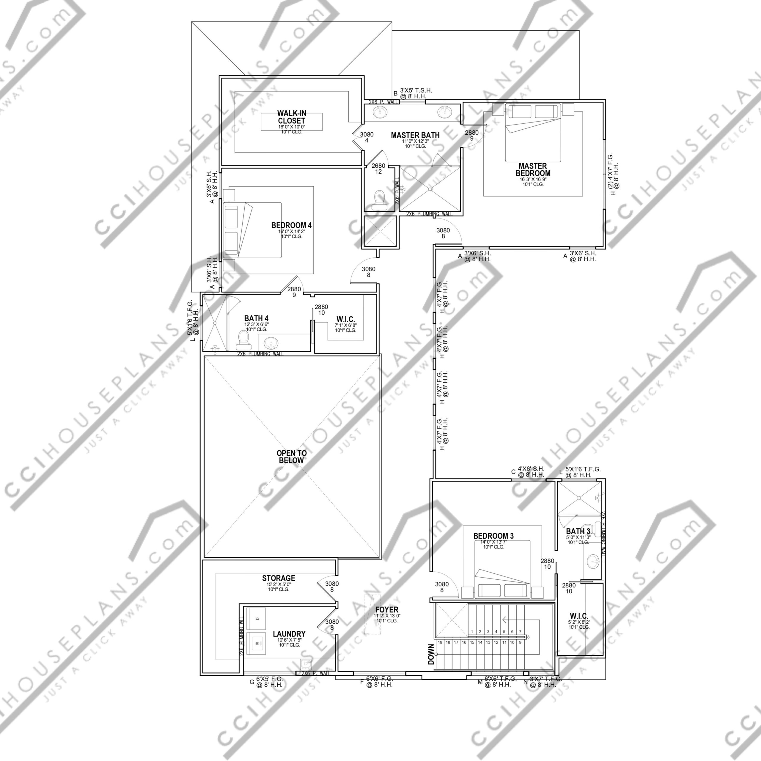 Drawing will indicate overall configuration of home at each side view and make note of plate heights, roof overhangs, window header heights, roof pitches, materials used and extent to which they are used and enlargement of any details we feel necessary to explain the construction.
