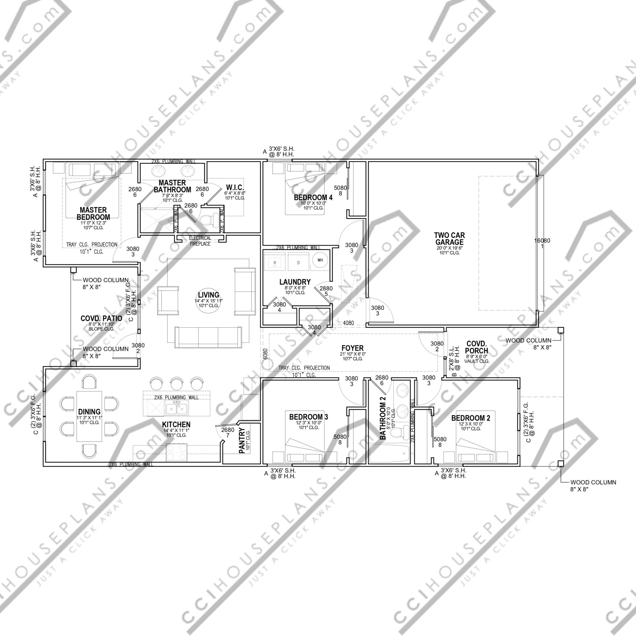 Plans indicating location and types of electrical fixtures, switches, outlets, and how they are to be switched. Plans do not include circuiting or wire sizing. Plans will also include specialty items such as hose bibbs, gas connections, location of a/c equipment, return air vents or other mechanical/electrical/plumbing items which need to be located.