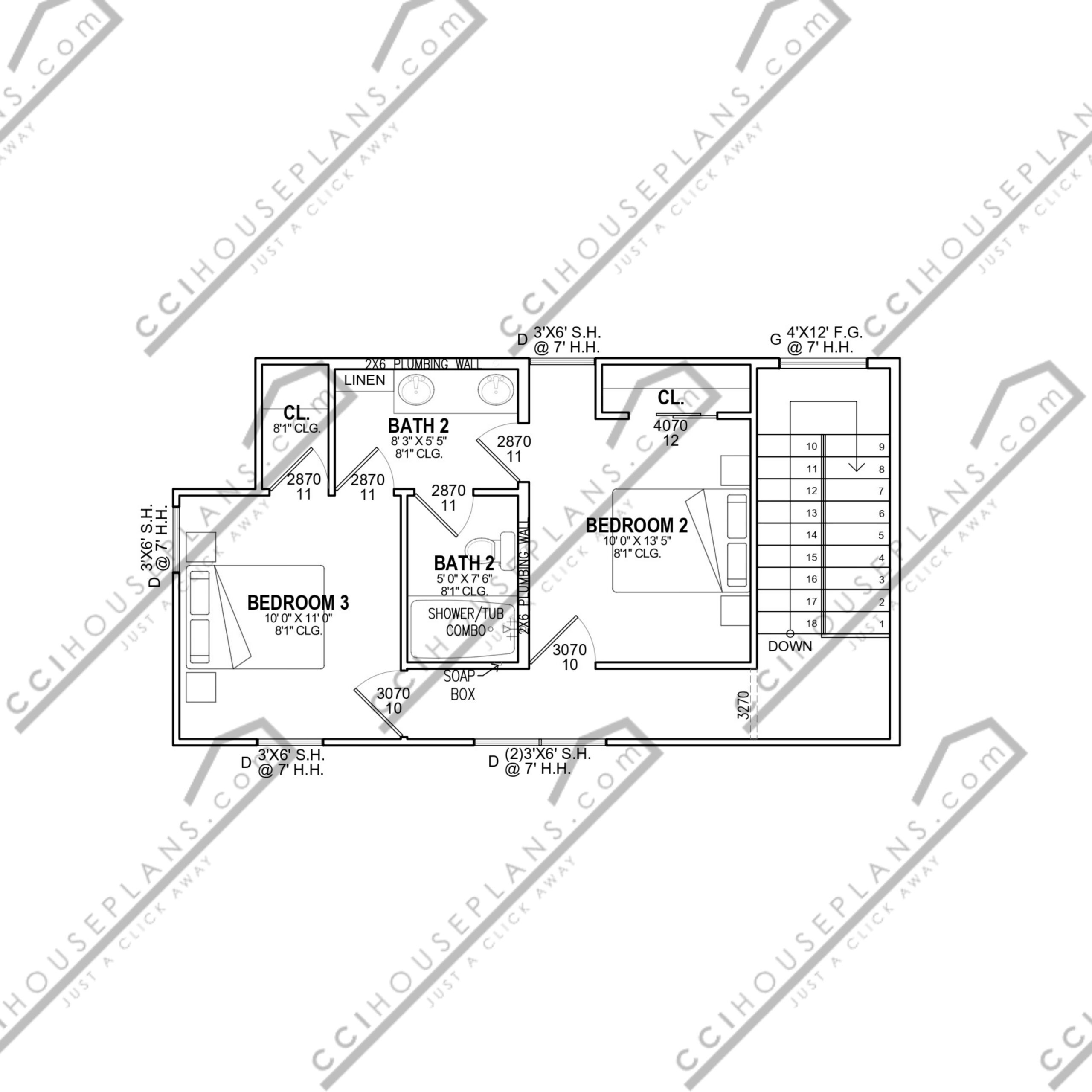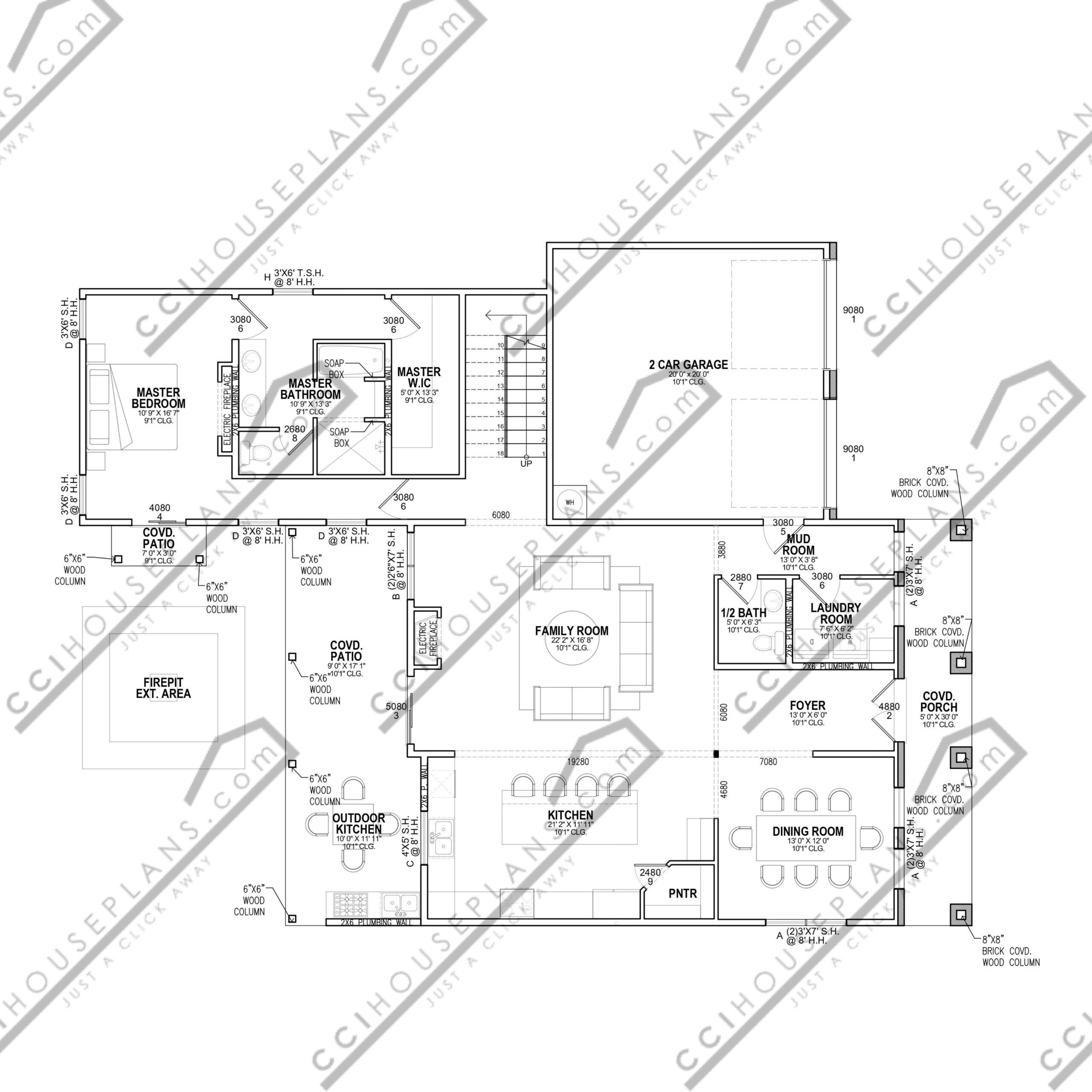 Scale floor plan indicating location of frame and masonry walls, support members, doors, windows, plumbing, fixtures, cabinets, shelving, ceiling conditions and notes deemed relevant to this plan.