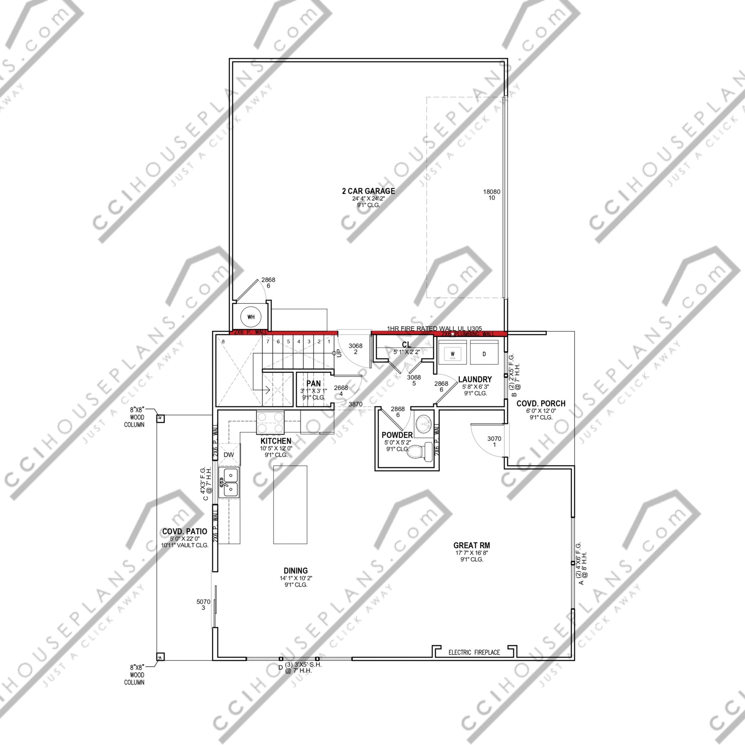 Plans indicating location and types of electrical fixtures, switches, outlets, and how they are to be switched. Plans do not include circuiting or wire sizing. Plans will also include specialty items such as hose bibbs, gas connections, location of a/c equipment, return air vents or other mechanical/electrical/plumbing items which need to be located.