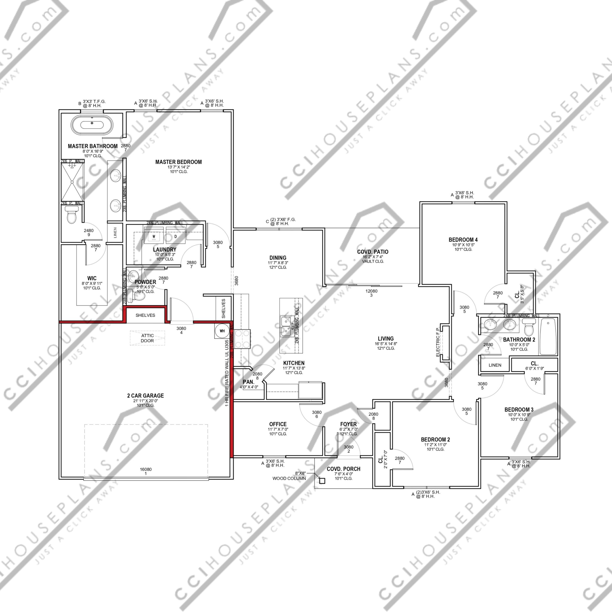 Scale floor plan indicating location of frame and masonry walls, support members, doors, windows, plumbing, fixtures, cabinets, shelving, ceiling conditions and notes deemed relevant to this plan.